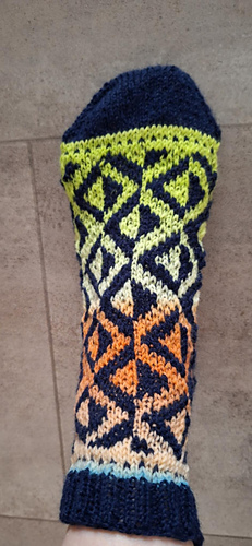 It’s a temporarily free pattern until 11/24/25 at 11:59 PM EST when you buy any one pattern from my shop. Simply add two patterns to your cart, and the Geometrix Socks pattern will be automatically free.