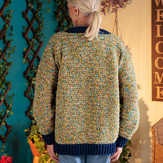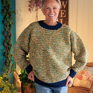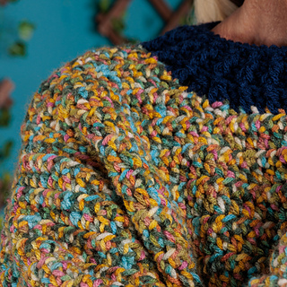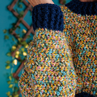 Update your closet with this colorful crochet pullover from Red Heart Super Saver Jazzy.
