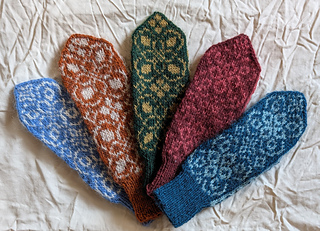 Fallegir tvíbandavettlingar með blómamynstri. Þrjár útgáfur af munstrinu fylgja með til gamans.