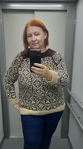 This sweater features a top-down, seamless raglan construction. It’s designed for comfort, with plenty of positive ease and no shaping, making it a relaxed and easy-to-wear piece. The neckband is added last, offering the option to modify it to your style and even turn into a cosy turtleneck. The design begins with the contrast colour at the top and gradually transitions to the main colour and if you’d love to knit it, make sure you pick a yarn combo with high contrast between them!