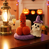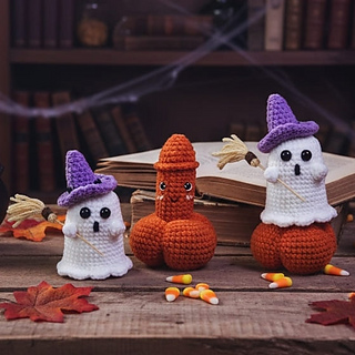 This pattern guides you how to make an adorable ghost dressed as a little witch, complete with a pointy purple hat, a tiny broom and a cheeky pumpkin. Perfect as a handmade Halloween decoration, a fun gift, or a playful centerpiece for your fall parties.