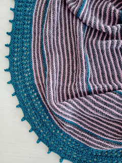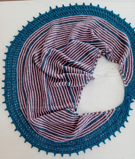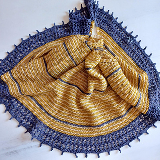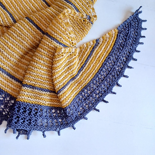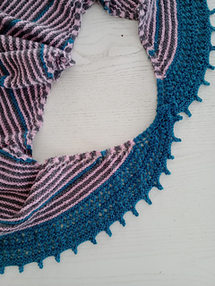 Questo scialle è nato un po’ per gioco e un po’ per dar vita alle tre matasse tinte con grande soddisfazione e che non meritavano di restare inutilizzate.