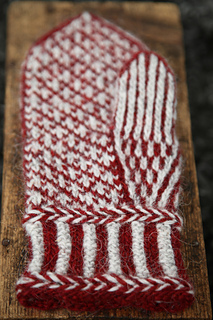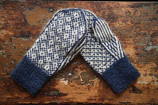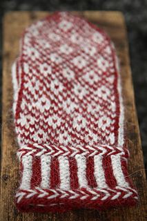 The Gift Mittens are knitted in two colours using a worsted weight