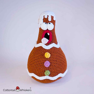 Cookie the Christmas gingerbread crochet pattern doorstop from Cottontail & Whiskers. Tuck in to this delicious yuletide ginger bread man door stopper with our detailed crochet pattern. Pages of clearly written photo tutorial assistance and how-to guide notes. Complete with an additional ‘print friendly’ section to save on toner ink and paper.