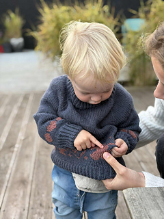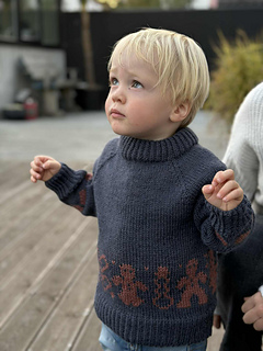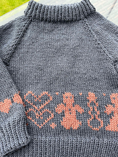 The Gingerbread Sweater is knitted from the bottom up, starting with the body and sleeves, which are worked separately. Once the body and sleeves are complete, they are joined together, and the yoke is shaped with raglan decreases. The sweater features a simple but beautiful colourwork pattern in contrasting colours.
