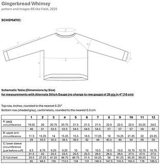 Pattern uses a 21 stitch gauge in 4” (10 cm). Pattern addendum includes an alternate gauge of 20 sts in 4” (10 cm). A full schematic with dimensions is included.