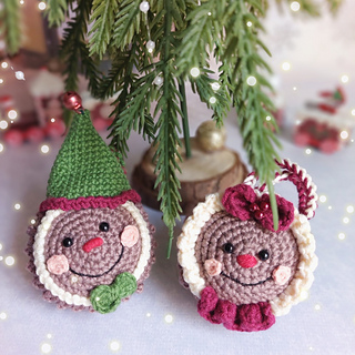 This set includes crochet pattern for gingerbread man and gingerbread girl Xmas balls.