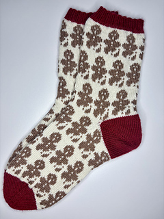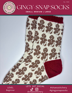 The Gingy-SNAP Sock Pattern is an fun take on the Gingy socks with little surprised gingerbread with their legs snapped off. These socks are designed to be a beginner friendly color-work sock pattern using only 2 colors per round, featuring a shadow-wrap heel, colorwork through the entire sock, ending with a wedge toe and which is grafted close to complete.