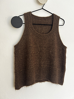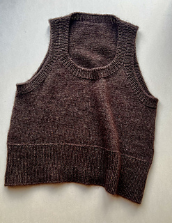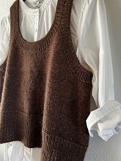 This slipover is knitted from the bottom and up. First you knit in the round up to the armhole, and then the upper part of back and front pieces are worked separately, back and forth.