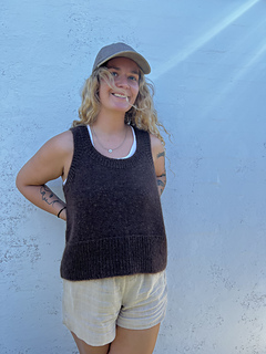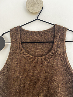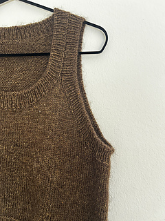 A distinctive feature of this design is the shoulder, as it consists of the meeting between the ribbing in armhole- and neckline.