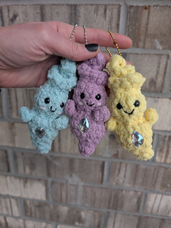 The keychain and gem are optional. I used 8 mm eyes but embroidered eyes would also look adorable!