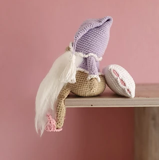 Using the hook and yarn sizes suggested, your Crochet gnome will measure height APPROX (when sitting) 6 IN