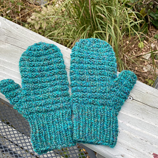 I designed these mittens to match my popular “Go-to Gift Hat”. The thermal stitch pattern feels so cozy to wear and has just enough going on to make it interesting but still easy to knit. Three circumference sizes, a lot of width-wise stretch, and customizable lengths will make mittens to fit just about anyone you know.