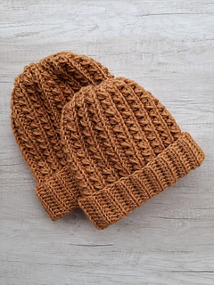 The pattern includes 8 sizes from Newborn to Adult Large, so you can make these charming beanies for the whole family!