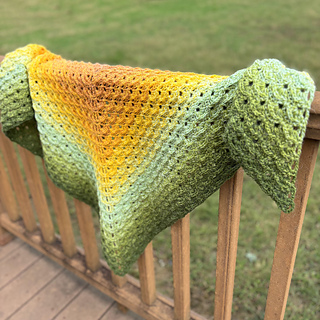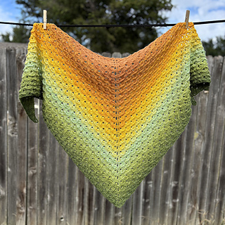 Golden Fall Shawl is a warm and textured triangle crochet shawl made from just one cake of gradient yarn. It’s an easy crochet project you can enjoy outdoors or while watching your favorite movie.