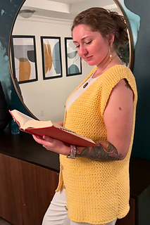For the featured Golden Hour Vest, I used Loops & Threads Heathered Bamboo yarn in the shade “Butter”. This bamboo/acrylic worsted weight blend has beautiful drape and breathability, giving the vest a polished finish that feels smooth and light against the skin. It’s a great option if you want a yarn that feels elevated without the high price tag and it’s widely available and easy to source. If you’d like to customize, you can substitute with any medium (4) worsted weight bamboo blend or a cotton blend for a similar drape and wearability.