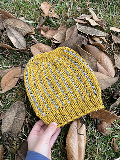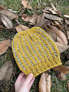 This two-color beanie features slip-stitch colorwork! It is fun and quick to work up, and a cool way to feature two of your favorite colors, or a variegated/solid combo!