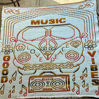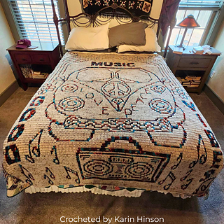 This throw-size design radiates peace, love, and music through its intricate and playful motifs.