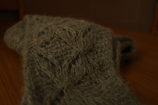 • Scarf instructions are provided in both written and charted form. The lace section is divided into five charts (each