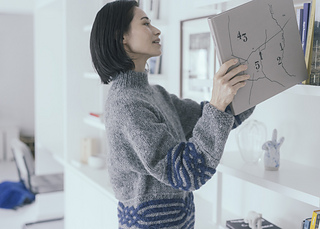 トップダウンで編むセーター. 均等に増目して丸ヨークを編んだら, 身頃と袖を分ける. 袖を休めておき, 身頃をメリヤス編みで輪で編む. 2色のケーブルパネルは, 後でほどける作り目の方法と引き抜きはぎの方法を使い往復編みで編み, 引き抜きとじで身頃と袖に綴じつける. 最後に身頃の裾と袖口を鹿の子編みで仕上げる. 特に重要なことは, 縦方向に編む身頃と袖を横方向に編むケーブルパネルと引き抜きとじで綴じ合わせるため, 指定のゲージとパネルのサイズを維持すること.