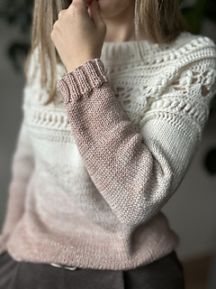 The file includes a chart (not written pattern) and instructions in both Polish and English. A short instruction for transitioning from the crocheted yoke to the knitted body and sleeves is also included.