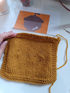 Yo he tejido una muestra de tensión de 35 puntos por 47 vueltas. Las 3 primeras vueltas a punto bobo y el