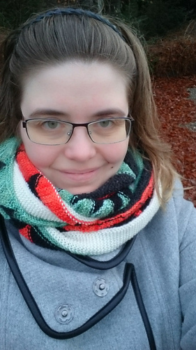 tørklædet strikkes i sektioner og lægger op til fri leg med forskelige teknikker og garner
