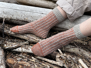 GRAMPS socks are fun to knit and combine 2 of my favourite techniques of working with colour: simple stranded 1x1 colourwork and slipped stitch knitting. The majority of the socks (leg and foot) are worked using a slipped stitch technique which creates fun vertical stripes and uses only one colour per round. The bottoms of the heels and toes are worked in simple 1x1 stranded colourwork that will add extra durability to your socks.