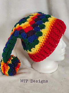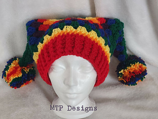 This pattern has no gauge or yarn weight or hook size because it is not needed! Use the hook hat is appropriate for your yarn choice, and follow the link to find complete instructions on how to turn that into a Jester Hat!