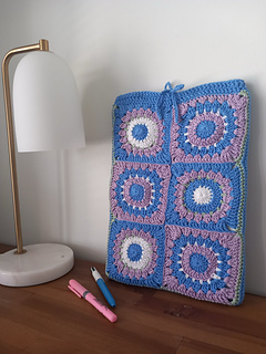 You can use the pattern to create your own Granny Laptop Sleeve! The pattern features instructions for both a 13 inch and 15 inch version and offers two options for the opening, either on the long or short side of the sleeve. The pattern also includes a tester lookbook to see some different outcomes of the pattern with different types of yarn.