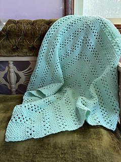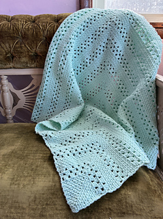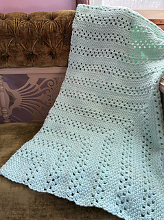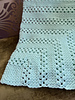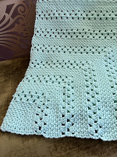 This baby blanket features alternating linen stitch and granny stitch bands in a square progressing out diagonally from the starting corner.