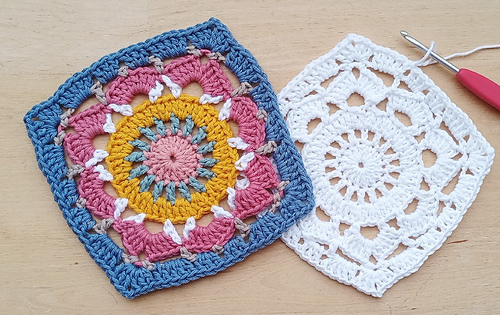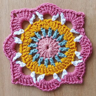 You can use this granny square in lots of projects, such as blankets, pillows, scarfs, bags etc., and if you only make 5 rounds, then you can use it as a flower coaster. Make a set for a nice house warming gift!
