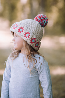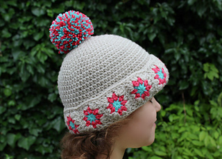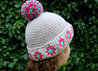 A fun hat that uses the traditional granny square motifs we all know and love to create a cute brim.