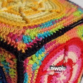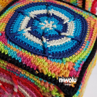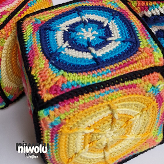 Create a beautiful colourful building block out of granny squares.