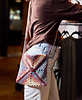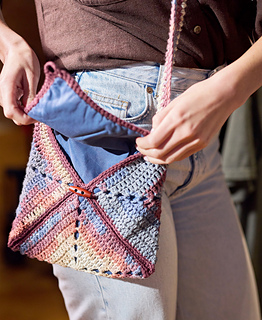 This Bag is made up of 4 Motifs that are seamed together. A lining is sewn to the inside of the assembled motifs, and then the final Bag seams are sewn. A Strap is crocheted separately and sewn to the Bag.