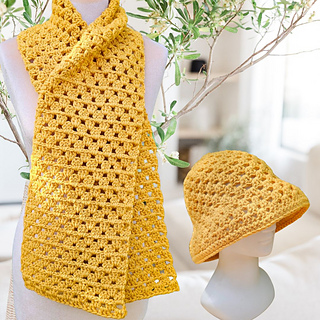 Both the hat and scarf feature the classic granny stitch — easy to learn and beautifully textured. The scarf is soft and versatile, while the bucket hat adds a trendy, wearable touch. Together, they form a stylish set that’s fun to make and effortless to wear.