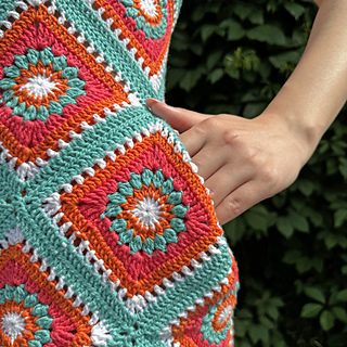I’m happy to show you a new crochet pattern for trendy GRANNY SQUARE sundress with pockets!