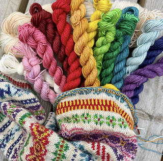 Hand dyed kits in Bluefaced Leicester or Shetland wool available from The Knitting Viking