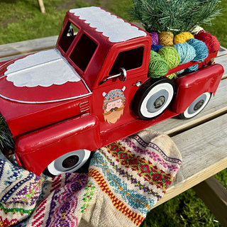 Our 2025 Fairisle stocking knitted with traditional patterns, full instructions with colour charts and additional alphabet charts for personalisation