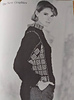 Collar, underarm panels and side panels knitted in Fair Isle using the two yarns. All the panels are joined with an over-stitch to represent thonging. Back is longer than the front.