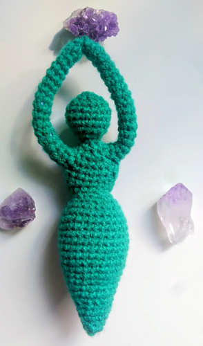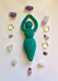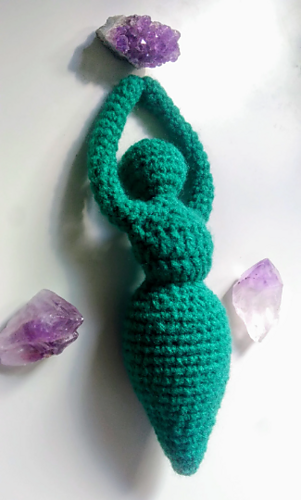 This is a crochet pattern for a Goddess figure. I created this pattern because I wanted to make a Crochet Goddess for each holiday and season of the year. I love crocheting the Goddesses in the colors associated with a particular season or holiday, and placing them on my altar at home. They are also a great travel size, so they can accompany you anywhere. Or you can create one for yourself or a loved one to snuggle and find comfort in.
