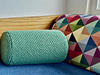 Nummer Eins ist schon fertig: Aus einem Wollrest von 300 Gramm und einer Schaumgummi-Rolle entstand ein sehr schnell zu fertigendes Wohlfühlkissen, das gute Dienste beim Lesen oder Stricken leisten wird. Das einfache Hebemaschen-Muster, das ich normalerweise für die Fersen bei Socken nutze, sieht mit der dicken Wolle spannend aus. Kurzum: Operation gelungen!