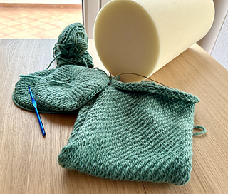 Number one is already finished: From a 300-gram skein of leftover yarn and a roll of foam rubber, I knitted and crocheted a very quick and easy-to-make comfy cushion that will be perfect for reading or knitting. The simple slip-stitch pattern, which I usually use for sock heels, looks interesting with the chunky yarn. In short: Mission accomplished!