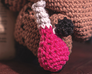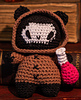 Gremlino the Necromancer amigurumi is entirely crocheted. It is about 12 cm tall from head to toe. The hood can be pulled back!
