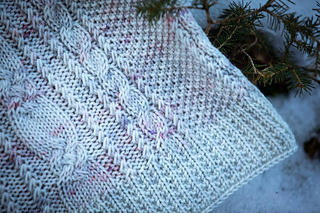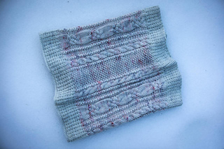 Beim Stricken des Cowls kommt keine Langeweile auf. Zwischen einem größeren Zopf und zwei kleineren Zöpfen, finden sich sowohl verkreuzte Reihen als auch Perlmuster.