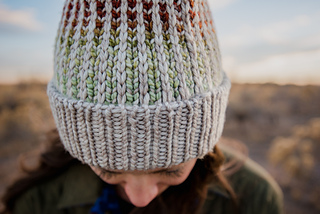 The Gridlines Hat grew out of a personal challenge: to design a pattern that feels approachable for newer knitters while still offering the thoughtful details and polished finish I love in a well-fitting handknit. At first glance, the fabric might read as brioche or another advanced technique—but it’s delightfully simple! The graphic columns of color are created with an easy slipped-stitch pattern worked every other round, using just one yarn at a time.