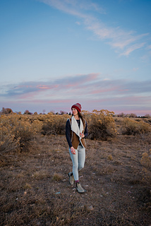 This pattern is designed for an overall bulky-weight fabric, which can be achieved either with a single strand of bulky yarn or by holding multiple lighter-weight yarns together. See the Notes section of the pattern for helpful tips on choosing and pairing yarns!