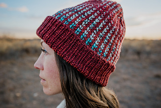 Design & Construction: The Gridlines Hat is a classic beanie-style design featuring a 2-color mosaic stitch pattern and single-folded brim. It is worked bottom-up beginning with the brim, which is knit in 1x1 ribbing. The body of the hat is worked in a simple-to-memorize slipped stitch pattern that is repeated over two rounds.