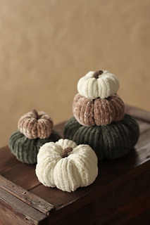 Gromme gresskar kommer i tre størrelser, liten, medium og stor. De strikkes med dobbel tråd i glattstrikk, med vrangmasker som markerer hvor seksjonene i gresskaret skal være. Gresskaret fylles før montering. Til slutt strikkes stilken med enkel tråd. Stilken sys på i etterkant.