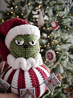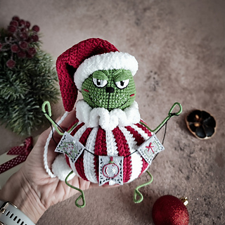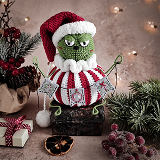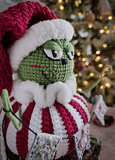 Grumpy Green Holiday Creature crochet pattern includes 31 pages of detailed crochet description, about 133 photos, and a list of materials.